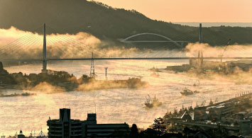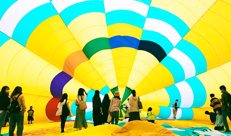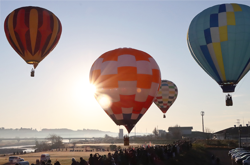 松島の絶景朝活スポット!上空20mまで上昇した熱気球から松島湾に浮かぶ島々と朝陽、キラキラ輝く水面を望めます。朝しか見られない松島の絶景に感動すること間違いなし!