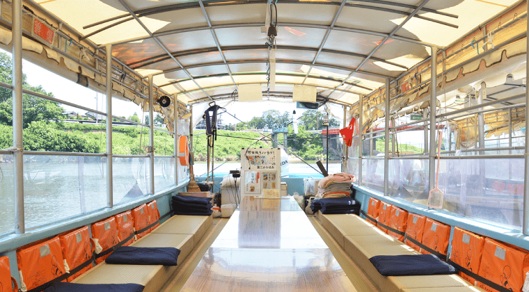 一級河川の阿武隈川を下る阿武隈ライン舟下りでは秋限定で「いも煮舟」が運行!舟の上で芋煮を味わえる特別な体験です。ネコ型に可愛く切り抜かれた人参が芋煮に入っていて特別感はさらにアップ!川沿いの紅葉や船頭さんのお話と一緒に、旬の味覚をゆったり楽しみましょう。